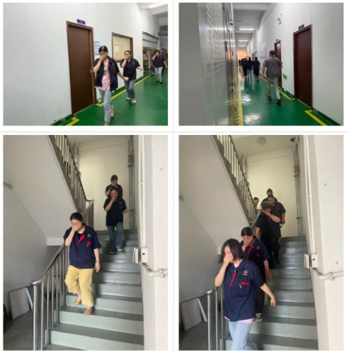 Comme l'alarme sonnait, tous les employés sont immédiatement entrés dans un état d'urgence. Sous la direction des guides d'évacuation, tout le monde s'est penché, s'est couvert la bouche et le nez et a rapidement évacué vers la zone sûre le long de la route prédéterminée.