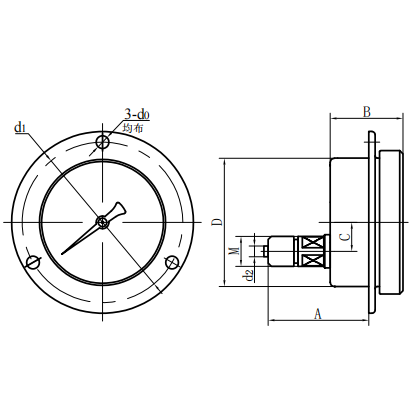 | Yc100- Ⅱ | 83 | 44 | 34 | Φ 100 | / | / | Φ 6 | M20 × 1.5 |